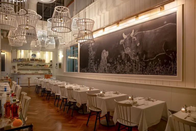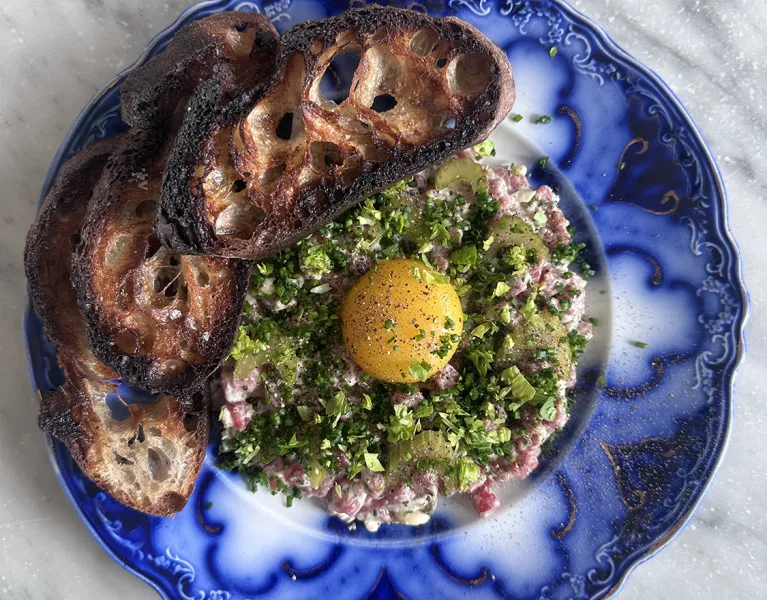 Specialty dry aged grass fed and grass finished steak cuts are sold by weight and availability alongside Chef Taylor Thornhill’s inventive dishes, oft replete with foraged and fermented ingredients.